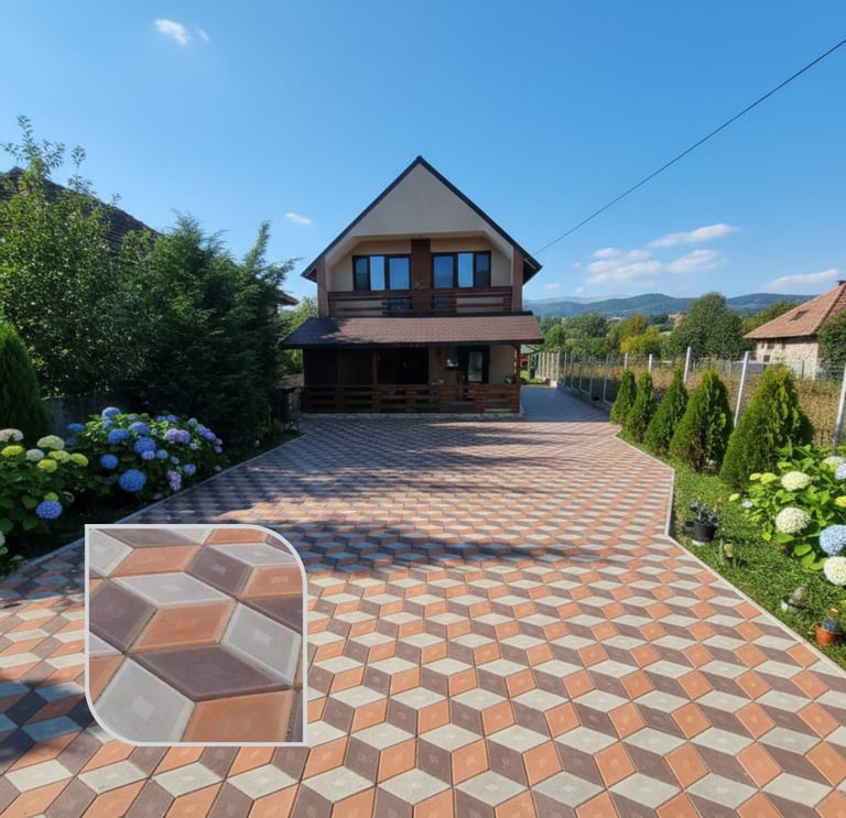 Creează un impact vizual de neuitat cu pavajul nostru tridimensional. Modelul Romb 3D transformă orice suprafață plană într-o operă de artă arhitecturală, oferind o iluzie de profunzime și volum. Este alegerea ideală pentru proprietarii care doresc un design avangardist, durabil și plin de personalitate pentru curți, piețe sau zone comerciale.